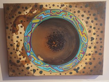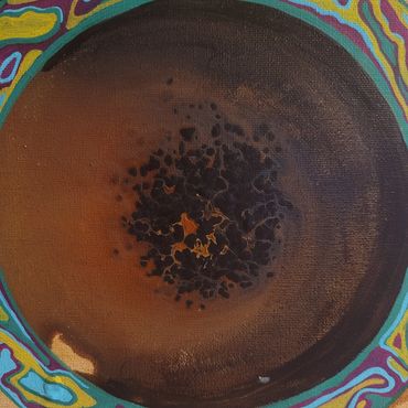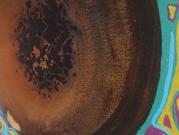 Dit schilderij is geïnspireerd op de kleurexplosies en patronen die zichtbaar afsteken tegen de bruine aarde. Als zaadje ontkiemen in de donkere aarde en in het licht komen. In dit licht verder mogen groeien tot iets prachtigs! Ieder uniek op zijn eigen manier.