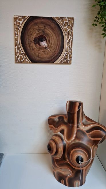 Dit schilderij is geïnspireerd op dat iedereen er mag zijn en dat we verbonden zijn samen, net als de bomen met hun wortels. In opdracht van lactatiekundigepraktijkNOP.