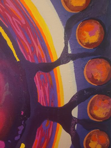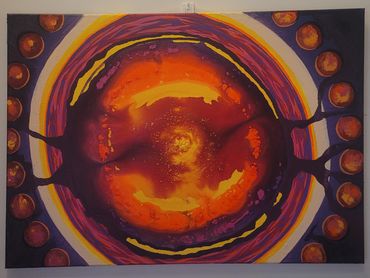Dit schilderij is geïnspireerd op de zon. Deze neemt deel aan een oneindige herhalende dans met de andere planeten. Deze planeten zijn afzonderlijk van elkaar hierin verbonden.